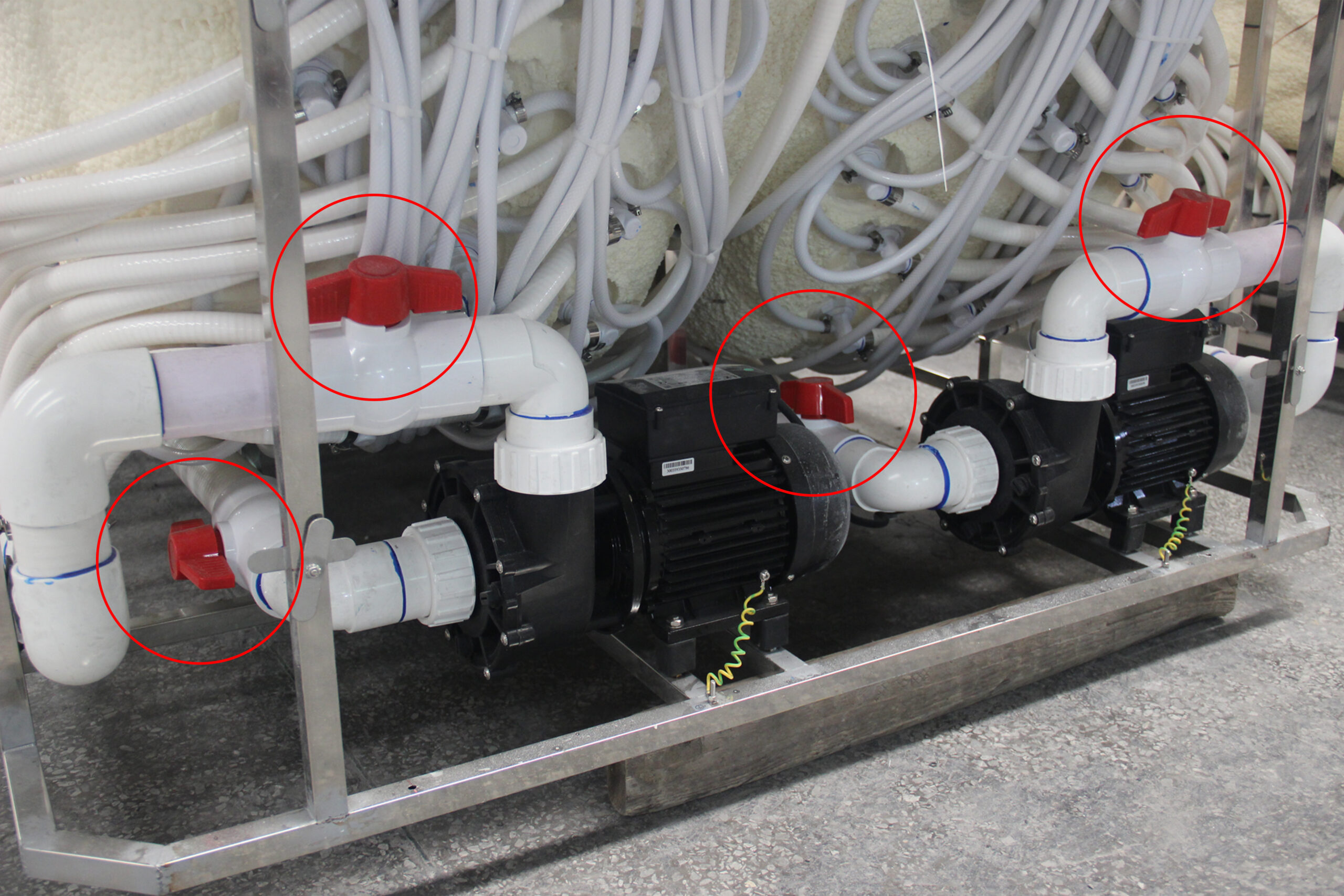 Each jacuzzi hot tub spa pump is fitted with heavy-duty ball valves on both the inlet and outlet sides, enabling independent isolation and control of the pump circuit. In the event of a pump issue, the unit can be serviced or replaced without draining the spa.